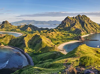 Un chapelet de terres arides et de dragons endémiques bordé de récifs coralliens colorés.